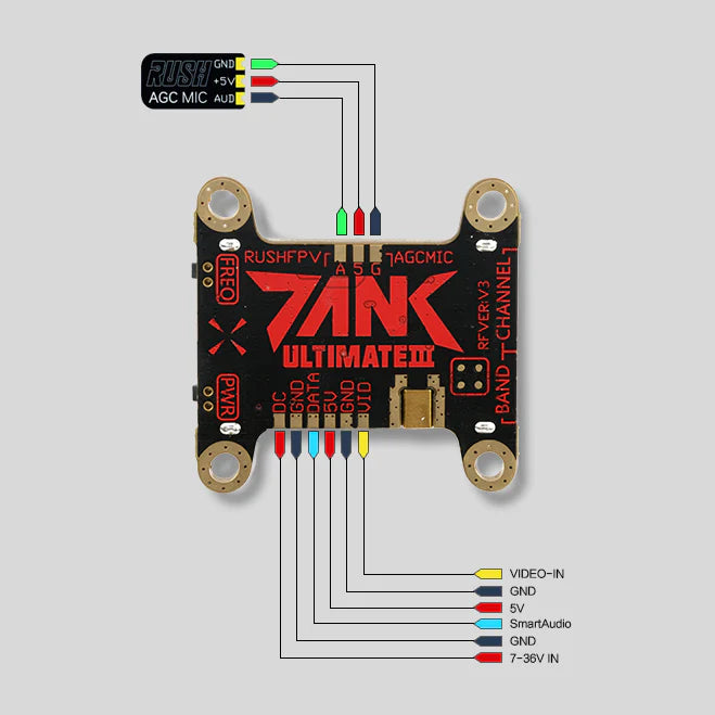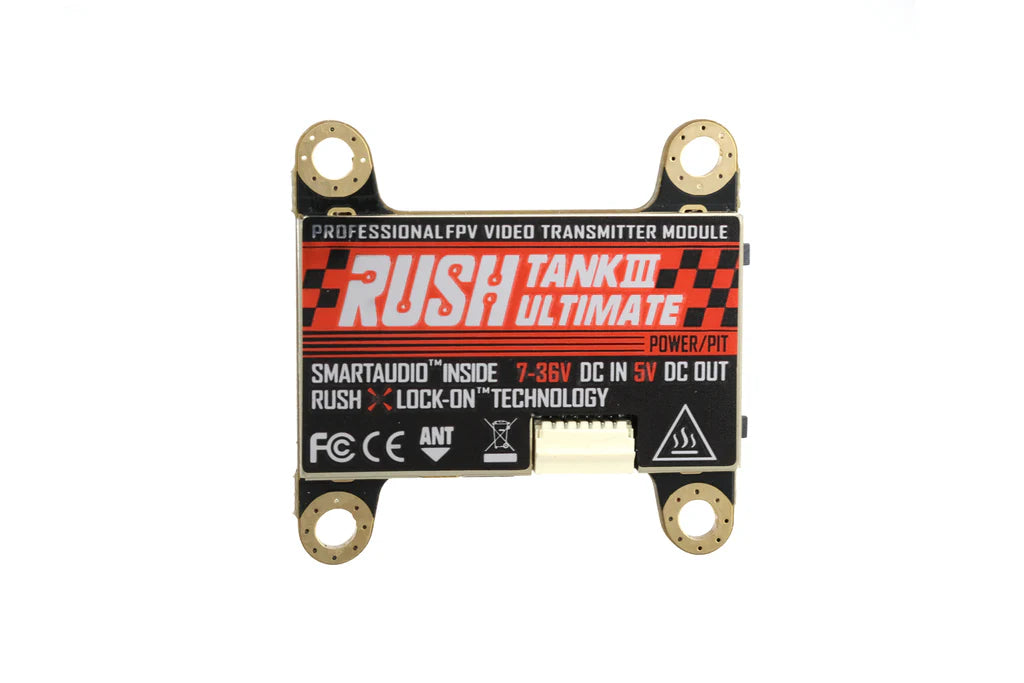 The RUSH Tank is a high-quality 5.8GHz VTX with strong anti-interference ability and stable transmission. The TANK has four adjustable levels of transmitting power. They are PIT/25/200/500/1000mW respectively.