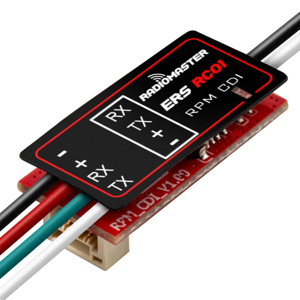 The ERS-RC01 Gasoline Engine Tachometer measures RPM by connecting directly to your engine's CDI speed output. The sensor accurately detects engine speed, transmits the data to a compatible ExpressLRS receiver through the CRSF interface, and then sends it back to your EdgeTX radio for real-time monitoring. Ideal for any application requiring accurate RPM feedback.