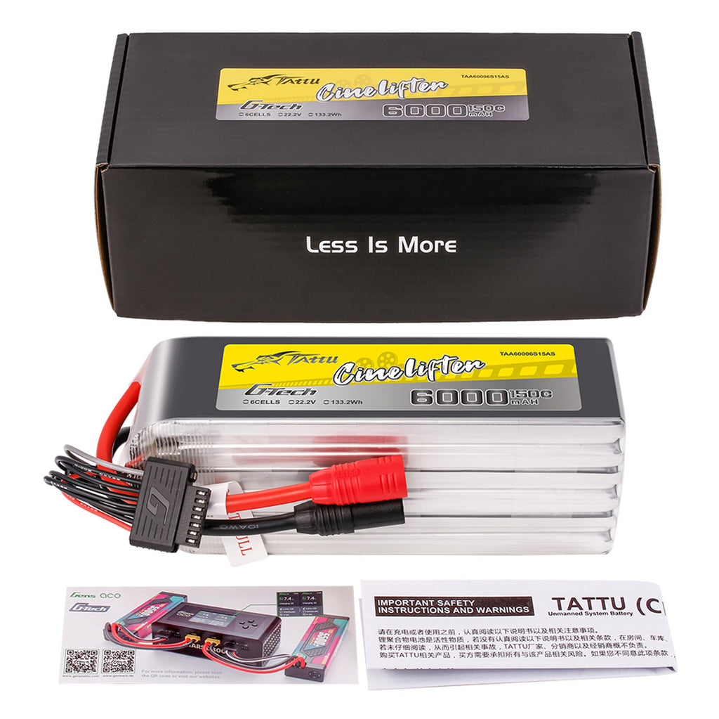 Tattu G-Tech 6000mAh 6S 150C Lipo Battery Pack with AS150 Plug